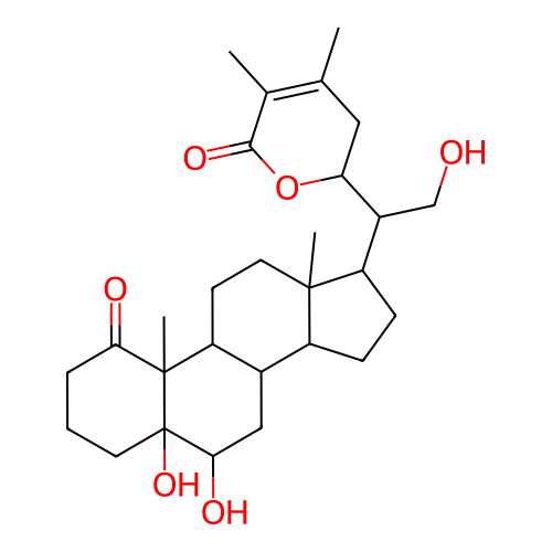 InChI=1S/C28H42O6/c1-15-12-22(34-25(32)16(15)2)18(14-29)20-8-7-19-17-13-24(31)28(33)10-5-6-23(30)27(28,4)21(17)9-11-26(19,20)3/h17-22,24,29,31,33H,5-14H2,1-4H3/t17-,18-,19-,20+,21-,22+,24+,26-,27-,28-/m0/s1 |