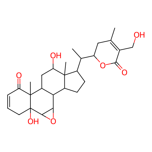 InChI=1S/C28H38O7/c1-13-10-19(34-25(32)15(13)12-29)14(2)16-7-8-17-22-18(11-21(31)26(16,17)3)27(4)20(30)6-5-9-28(27,33)24-23(22)35-24/h5-6,14,16-19,21-24,29,31,33H,7-12H2,1-4H3/t14-,16+,17-,18-,19+,21+,22-,23-,24-,26+,27-,28-/m0/s1 |