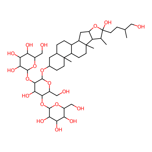 InChI=1S/C45H76O19/c1-19(15-46)7-12-45(57)20(2)30-26(64-45)14-25-23-6-5-21-13-22(8-10-43(21,3)24(23)9-11-44(25,30)4)58-42-39(63-41-36(55)34(53)32(51)28(17-48)60-41)37(56)38(29(18-49)61-42)62-40-35(54)33(52)31(50)27(16-47)59-40/h19-42,46-57H,5-18H2,1-4H3/t19-,20+,21+,22+,23-,24+,25+,26+,27-,28-,29-,30+,31-,32-,33+,34+,35-,36-,37+,38+,39-,40+,41+,42-,43+,44+,45-/m1/s1 |