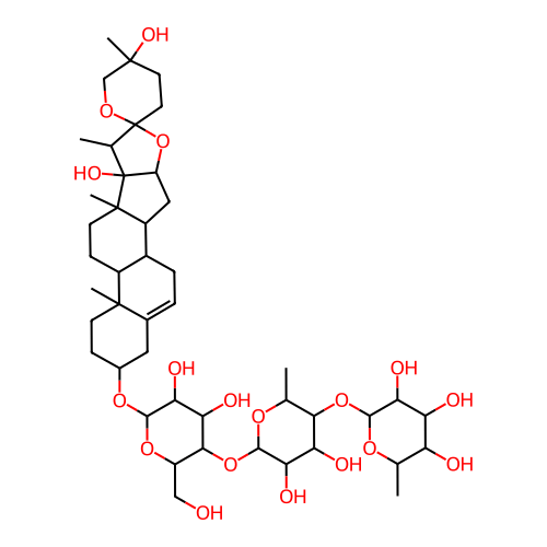 InChI=1S/C45H72O18/c1-19-29(47)30(48)33(51)38(57-19)61-36-20(2)58-39(34(52)31(36)49)62-37-27(17-46)60-40(35(53)32(37)50)59-23-9-11-42(5)22(15-23)7-8-24-25(42)10-12-43(6)26(24)16-28-45(43,55)21(3)44(63-28)14-13-41(4,54)18-56-44/h7,19-21,23-40,46-55H,8-18H2,1-6H3/t19-,20-,21+,23-,24+,25-,26-,27+,28-,29-,30+,31-,32+,33+,34+,35+,36-,37+,38-,39-,40+,41-,42-,43-,44+,45+/m0/s1 |