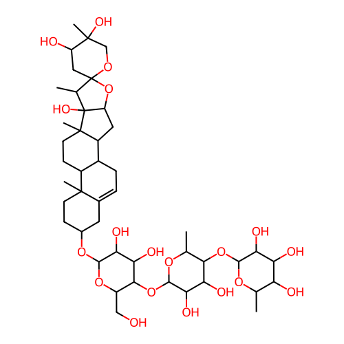 InChI=1S/C45H72O19/c1-18-29(48)30(49)33(52)38(58-18)62-36-19(2)59-39(34(53)31(36)50)63-37-26(16-46)61-40(35(54)32(37)51)60-22-9-11-41(4)21(13-22)7-8-23-24(41)10-12-42(5)25(23)14-28-45(42,56)20(3)44(64-28)15-27(47)43(6,55)17-57-44/h7,18-20,22-40,46-56H,8-17H2,1-6H3/t18-,19-,20+,22-,23+,24-,25-,26+,27+,28-,29-,30+,31-,32+,33+,34+,35+,36-,37+,38-,39-,40+,41-,42-,43+,44+,45+/m0/s1 |