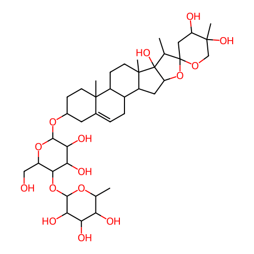 InChI=1S/C39H62O15/c1-17-27(42)28(43)30(45)33(50-17)53-32-24(15-40)52-34(31(46)29(32)44)51-20-8-10-35(3)19(12-20)6-7-21-22(35)9-11-36(4)23(21)13-26-39(36,48)18(2)38(54-26)14-25(41)37(5,47)16-49-38/h6,17-18,20-34,40-48H,7-16H2,1-5H3/t17-,18+,20-,21+,22-,23-,24+,25+,26-,27-,28+,29+,30+,31+,32+,33-,34+,35-,36-,37+,38+,39+/m0/s1 |