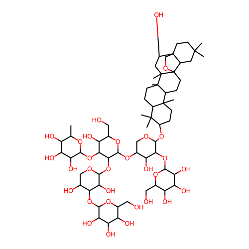 InChI=1S/C64H106O30/c1-25-36(70)41(75)44(78)53(85-25)92-49-39(73)29(21-67)88-57(51(49)94-52-47(81)48(26(68)22-82-52)91-54-45(79)42(76)37(71)27(19-65)86-54)89-30-23-83-56(50(40(30)74)93-55-46(80)43(77)38(72)28(20-66)87-55)90-35-11-12-60(6)31(59(35,4)5)9-13-61(7)32(60)10-14-64-33-17-58(2,3)15-16-63(33,24-84-64)34(69)18-62(61,64)8/h25-57,65-81H,9-24H2,1-8H3/t25-,26+,27+,28+,29+,30-,31-,32+,33+,34+,35-,36-,37+,38+,39+,40-,41+,42-,43-,44+,45+,46+,47+,48-,49-,50+,51+,52-,53-,54-,55-,56-,57-,60-,61+,62-,63+,64-/m0/s1 |