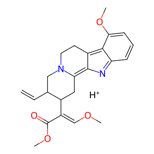 C=CC1CN2CCC3=c4c(OC)cccc4=NC3=C2CC1C(=COC)C(=O)OC.[H+] |