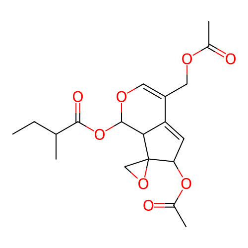 CCC(C)C(=O)OC1OC=C(COC(C)=O)C2=CC(OC(C)=O)C3(CO3)C21 |