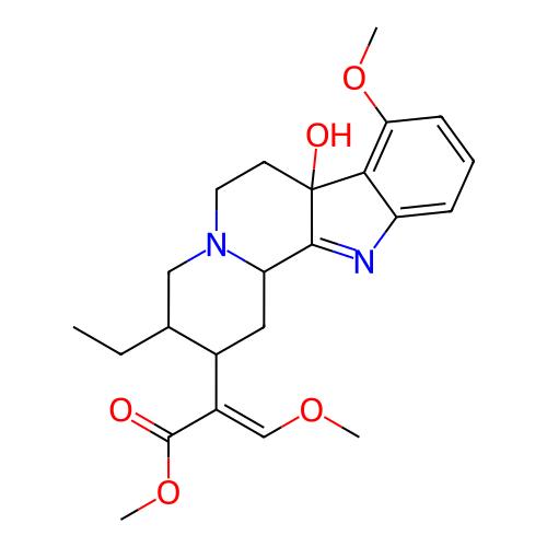 InChI=1S/C23H30N2O5/c1-5-14-12-25-10-9-23(27)20-17(7-6-8-19(20)29-3)24-21(23)18(25)11-15(14)16(13-28-2)22(26)30-4/h6-8,13-15,18,27H,5,9-12H2,1-4H3/b16-13+/t14-,15-,18+,23+/m0/s1 |