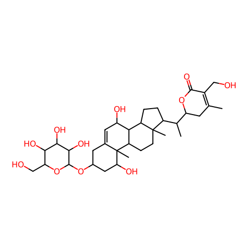 InChI=1S/C34H52O11/c1-15-9-24(44-31(42)19(15)13-35)16(2)20-5-6-21-27-22(7-8-33(20,21)3)34(4)17(11-23(27)37)10-18(12-26(34)38)43-32-30(41)29(40)28(39)25(14-36)45-32/h11,16,18,20-30,32,35-41H,5-10,12-14H2,1-4H3/t16-,18+,20+,21-,22-,23-,24+,25+,26-,27-,28+,29-,30+,32+,33+,34-/m0/s1 |