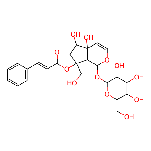 InChI=1S/C24H30O12/c25-11-14-17(29)18(30)19(31)21(34-14)35-22-20-23(12-26,10-15(27)24(20,32)8-9-33-22)36-16(28)7-6-13-4-2-1-3-5-13/h1-9,14-15,17-22,25-27,29-32H,10-12H2/b7-6+/t14-,15-,17-,18+,19-,20-,21+,22+,23-,24-/m1/s1 |