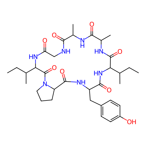 InChI=1S/C34H51N7O8/c1-7-18(3)27-33(48)37-21(6)30(45)36-20(5)29(44)35-17-26(43)39-28(19(4)8-2)34(49)41-15-9-10-25(41)32(47)38-24(31(46)40-27)16-22-11-13-23(42)14-12-22/h11-14,18-21,24-25,27-28,42H,7-10,15-17H2,1-6H3,(H,35,44)(H,36,45)(H,37,48)(H,38,47)(H,39,43)(H,40,46)/t18-,19-,20-,21-,24-,25-,27-,28-/m0/s1 |