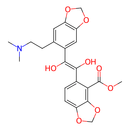 InChI=1S/C22H23NO8/c1-23(2)7-6-12-8-16-17(30-10-29-16)9-14(12)20(25)19(24)13-4-5-15-21(31-11-28-15)18(13)22(26)27-3/h4-5,8-9,24-25H,6-7,10-11H2,1-3H3/b20-19+ |