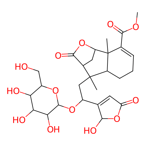 COC(=O)C1=CCCC2C(C)(CC(OC3OC(CO)C(O)C(O)C3O)C3=CC(=O)OC3O)C3CC(OC3=O)C12C |