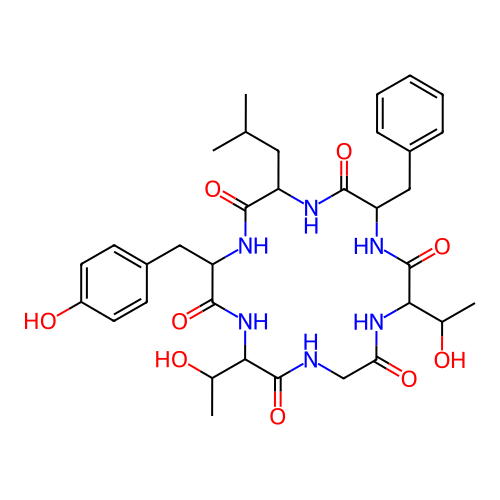 InChI=1S/C34H46N6O9/c1-18(2)14-24-30(45)37-26(16-22-10-12-23(43)13-11-22)32(47)40-28(19(3)41)33(48)35-17-27(44)39-29(20(4)42)34(49)38-25(31(46)36-24)15-21-8-6-5-7-9-21/h5-13,18-20,24-26,28-29,41-43H,14-17H2,1-4H3,(H,35,48)(H,36,46)(H,37,45)(H,38,49)(H,39,44)(H,40,47)/t19-,20-,24+,25+,26+,28+,29+/m1/s1 |