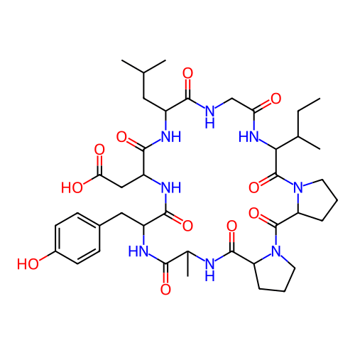 InChI=1S/C40H58N8O11/c1-6-22(4)33-40(59)48-16-8-10-30(48)39(58)47-15-7-9-29(47)38(57)42-23(5)34(53)43-27(18-24-11-13-25(49)14-12-24)36(55)45-28(19-32(51)52)37(56)44-26(17-21(2)3)35(54)41-20-31(50)46-33/h11-14,21-23,26-30,33,49H,6-10,15-20H2,1-5H3,(H,41,54)(H,42,57)(H,43,53)(H,44,56)(H,45,55)(H,46,50)(H,51,52)/t22-,23-,26-,27-,28-,29-,30-,33-/m0/s1 |