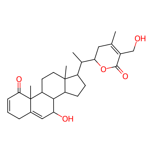 InChI=1S/C28H38O5/c1-15-12-23(33-26(32)18(15)14-29)16(2)19-8-9-20-25-21(10-11-27(19,20)3)28(4)17(13-22(25)30)6-5-7-24(28)31/h5,7,13,16,19-23,25,29-30H,6,8-12,14H2,1-4H3/t16-,19+,20-,21-,22-,23+,25-,27+,28-/m0/s1 |