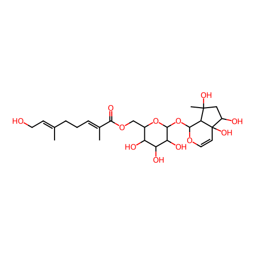 InChI=1S/C25H38O12/c1-13(7-9-26)5-4-6-14(2)21(31)35-12-15-17(28)18(29)19(30)22(36-15)37-23-20-24(3,32)11-16(27)25(20,33)8-10-34-23/h6-8,10,15-20,22-23,26-30,32-33H,4-5,9,11-12H2,1-3H3/b13-7+,14-6+/t15-,16-,17-,18+,19-,20-,22+,23+,24+,25-/m1/s1 |