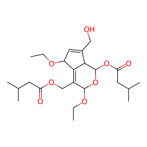 InChI=1S/C24H38O8/c1-7-28-18-11-16(12-25)21-22(18)17(13-30-19(26)9-14(3)4)23(29-8-2)32-24(21)31-20(27)10-15(5)6/h11,14-15,18,21,23-25H,7-10,12-13H2,1-6H3/t18-,21-,23+,24-/m1/s1 |