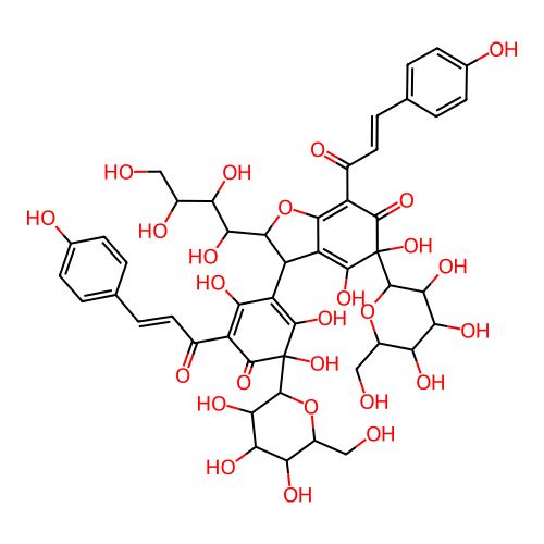 InChI=1S/C48H52O26/c49-13-22(56)30(57)36(63)40-27(28-33(60)25(20(54)11-5-16-1-7-18(52)8-2-16)41(66)47(70,43(28)68)45-37(64)34(61)31(58)23(14-50)72-45)29-39(74-40)26(21(55)12-6-17-3-9-19(53)10-4-17)42(67)48(71,44(29)69)46-38(65)35(62)32(59)24(15-51)73-46/h1-12,22-24,27,30-32,34-38,40,45-46,49-53,56-65,68-71H,13-15H2/b11-5+,12-6+/t22-,23-,24-,27+,30-,31-,32-,34+,35+,36+,37-,38-,40+,45-,46-,47-,48-/m1/s1 |