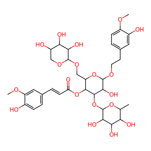 InChI=1S/C36H48O19/c1-16-26(41)28(43)30(45)36(52-16)55-33-31(46)35(49-11-10-18-5-8-22(47-2)20(38)12-18)53-24(15-51-34-29(44)27(42)21(39)14-50-34)32(33)54-25(40)9-6-17-4-7-19(37)23(13-17)48-3/h4-9,12-13,16,21,24,26-39,41-46H,10-11,14-15H2,1-3H3/b9-6-/t16-,21-,24+,26-,27-,28+,29+,30+,31+,32+,33+,34-,35+,36-/m0/s1 |