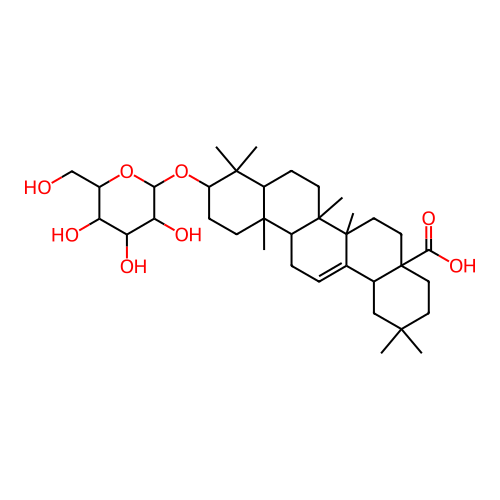 InChI=1S/C36H58O8/c1-31(2)14-16-36(30(41)42)17-15-34(6)20(21(36)18-31)8-9-24-33(5)12-11-25(32(3,4)23(33)10-13-35(24,34)7)44-29-28(40)27(39)26(38)22(19-37)43-29/h8,21-29,37-40H,9-19H2,1-7H3,(H,41,42)/t21-,22-,23?,24-,25+,26-,27+,28-,29+,33+,34-,35-,36+/m1/s1 |