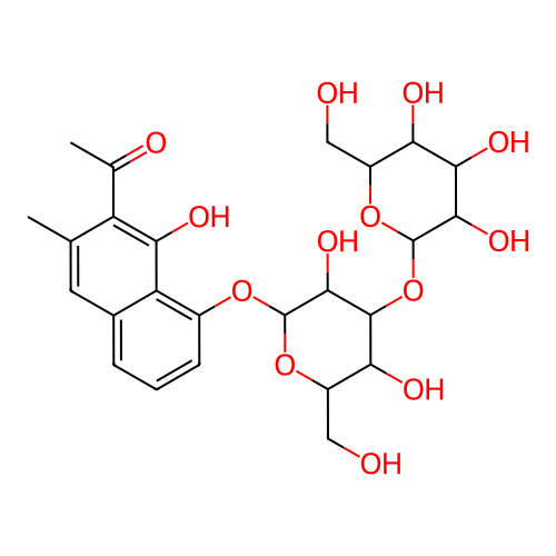 InChI=1S/C25H32O13/c1-9-6-11-4-3-5-12(16(11)19(31)15(9)10(2)28)35-25-22(34)23(18(30)14(8-27)37-25)38-24-21(33)20(32)17(29)13(7-26)36-24/h3-6,13-14,17-18,20-27,29-34H,7-8H2,1-2H3/t13-,14-,17-,18-,20+,21-,22-,23+,24+,25-/m1/s1 |