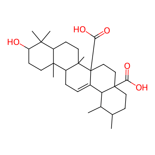 InChI=1S/C30H46O5/c1-17-9-14-29(24(32)33)15-16-30(25(34)35)19(23(29)18(17)2)7-8-21-27(5)12-11-22(31)26(3,4)20(27)10-13-28(21,30)6/h7,17-18,20-23,31H,8-16H2,1-6H3,(H,32,33)(H,34,35)/t17-,18+,20+,21-,22+,23+,27+,28-,29+,30-/m1/s1 |