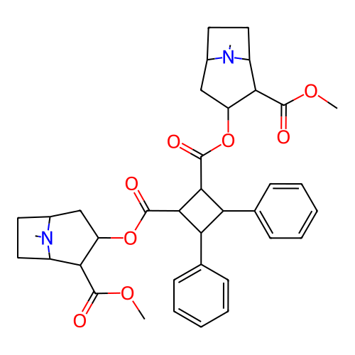 InChI=1S/C38H46N2O8/c1-39-23-15-17-25(39)31(35(41)45-3)27(19-23)47-37(43)33-29(21-11-7-5-8-12-21)30(22-13-9-6-10-14-22)34(33)38(44)48-28-20-24-16-18-26(40(24)2)32(28)36(42)46-4/h5-14,23-34H,15-20H2,1-4H3/t23-,24-,25+,26+,27-,28-,29-,30+,31+,32+,33+,34-/m0/s1 |