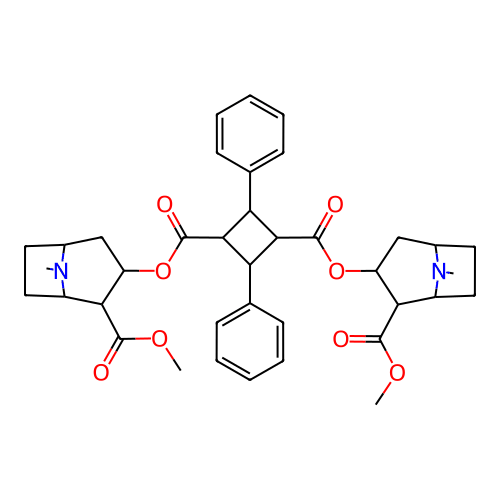 InChI=1S/C38H46N2O8/c1-39-23-15-17-25(39)31(35(41)45-3)27(19-23)47-37(43)33-29(21-11-7-5-8-12-21)34(30(33)22-13-9-6-10-14-22)38(44)48-28-20-24-16-18-26(40(24)2)32(28)36(42)46-4/h5-14,23-34H,15-20H2,1-4H3/t23-,24-,25+,26+,27-,28-,29?,30?,31+,32+,33?,34?/m0/s1 |