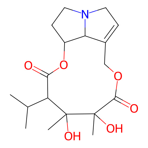 InChI=1S/C18H27NO6/c1-10(2)13-15(20)25-12-6-8-19-7-5-11(14(12)19)9-24-16(21)18(4,23)17(13,3)22/h5,10,12-14,22-23H,6-9H2,1-4H3/t12-,13+,14-,17-,18+/m1/s1 |