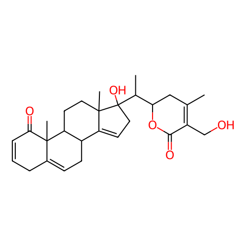 InChI=1S/C28H36O5/c1-16-14-23(33-25(31)20(16)15-29)17(2)28(32)13-11-21-19-9-8-18-6-5-7-24(30)27(18,4)22(19)10-12-26(21,28)3/h5,7-8,11,17,19,22-23,29,32H,6,9-10,12-15H2,1-4H3/t17-,19+,22+,23-,26+,27+,28+/m1/s1 |