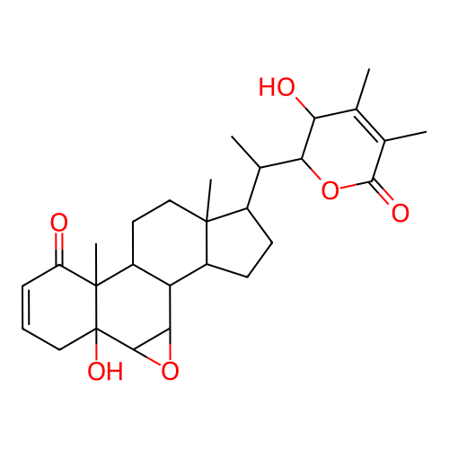 InChI=1S/C28H38O6/c1-13-14(2)25(31)34-22(21(13)30)15(3)16-8-9-17-20-18(10-12-26(16,17)4)27(5)19(29)7-6-11-28(27,32)24-23(20)33-24/h6-7,15-18,20-24,30,32H,8-12H2,1-5H3/t15-,16+,17-,18-,20-,21-,22-,23-,24-,26+,27-,28-/m0/s1 |