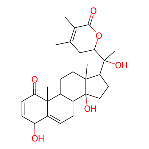 InChI=1S/C28H38O6/c1-15-14-23(34-24(31)16(15)2)27(5,32)21-11-13-28(33)18-6-7-19-20(29)8-9-22(30)26(19,4)17(18)10-12-25(21,28)3/h7-9,17-18,20-21,23,29,32-33H,6,10-14H2,1-5H3/t17-,18+,20-,21-,23+,25+,26+,27+,28+/m0/s1 |