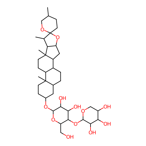 InChI=1S/C38H62O12/c1-18-7-12-38(46-16-18)19(2)28-26(50-38)14-24-22-6-5-20-13-21(8-10-36(20,3)23(22)9-11-37(24,28)4)47-35-32(44)30(42)33(27(15-39)48-35)49-34-31(43)29(41)25(40)17-45-34/h18-35,39-44H,5-17H2,1-4H3/t18-,19-,20+,21-,22+,23-,24-,25+,26-,27+,28-,29-,30+,31+,32+,33+,34-,35+,36-,37-,38+/m0/s1;InChI=1S/C38H62O12/c1-18-7-12-38(46-16-18)19(2)28-26(50-38)14-24-22-6-5-20-13-21(8-10-36(20,3)23(22)9-11-37(24,28)4)47-35-32(44)30(42)33(27(15-39)48-35)49-34-31(43)29(41)25(40)17-45-34/h18-35,39-44H,5-17H2,1-4H3/t18-,19-,20?,21?,22?,23?,24?,25+,26-,27+,28-,29-,30+,31+,32+,33+,34-,35+,36-,37-,38+/m0/s1;InChI=1S/C38H62O12/c1-18-7-12-38(46-16-18)19(2)28-26(50-38)14-24-22-6-5-20-13-21(8-10-36(20,3)23(22)9-11-37(24,28)4)47-35-32(44)30(42)33(27(15-39)48-35)49-34-31(43)29(41)25(40)17-45-34/h18-35,39-44H,5-17H2,1-4H3 |