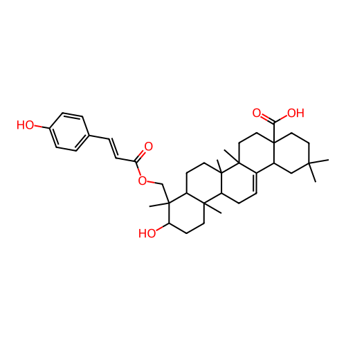 InChI=1S/C39H54O6/c1-34(2)19-21-39(33(43)44)22-20-37(5)27(28(39)23-34)12-13-30-35(3)17-16-31(41)36(4,29(35)15-18-38(30,37)6)24-45-32(42)14-9-25-7-10-26(40)11-8-25/h7-12,14,28-31,40-41H,13,15-24H2,1-6H3,(H,43,44)/b14-9+/t28-,29+,30+,31-,35-,36+,37+,38+,39-/m0/s1 |