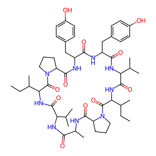 InChI=1S/C53H77N9O11/c1-10-30(7)43-52(72)61-24-12-14-39(61)48(68)54-32(9)45(65)57-41(28(3)4)50(70)59-44(31(8)11-2)53(73)62-25-13-15-40(62)49(69)56-37(26-33-16-20-35(63)21-17-33)46(66)55-38(27-34-18-22-36(64)23-19-34)47(67)58-42(29(5)6)51(71)60-43/h16-23,28-32,37-44,63-64H,10-15,24-27H2,1-9H3,(H,54,68)(H,55,66)(H,56,69)(H,57,65)(H,58,67)(H,59,70)(H,60,71)/t30-,31-,32-,37-,38-,39-,40-,41-,42-,43-,44-/m0/s1 |