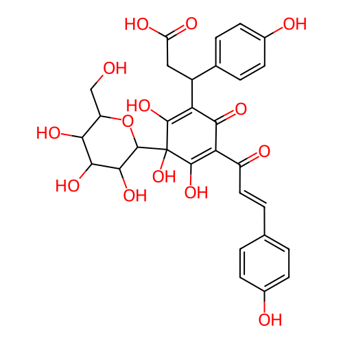 O=C(O)CC(C1=C(O)C(O)(C2OC(CO)C(O)C(O)C2O)C(O)=C(C(=O)C=Cc2ccc(O)cc2)C1=O)c1ccc(O)cc1 |