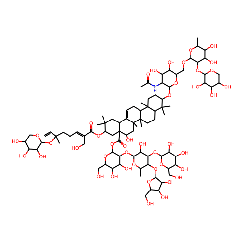 InChI=1S/C87H139NO43/c1-13-83(9,131-74-63(109)53(99)40(95)31-116-74)20-14-15-36(26-89)71(113)124-49-25-87(80(114)130-79-70(61(107)55(101)42(28-91)122-79)129-77-66(112)68(127-76-65(111)59(105)54(100)41(27-90)120-76)67(34(3)119-77)126-75-64(110)56(102)43(29-92)121-75)38(23-81(49,5)6)37-16-17-46-84(10)21-19-48(82(7,8)45(84)18-22-85(46,11)86(37,12)24-47(87)96)125-72-50(88-35(4)93)58(104)57(103)44(123-72)32-117-78-69(60(106)51(97)33(2)118-78)128-73-62(108)52(98)39(94)30-115-73/h13,15-16,33-34,38-70,72-79,89-92,94-112H,1,14,17-32H2,2-12H3,(H,88,93)/b36-15+/t33-,34+,38+,39-,40-,41-,42-,43+,44-,45+,46-,47-,48+,49+,50-,51+,52+,53+,54-,55-,56+,57-,58-,59+,60+,61+,62-,63-,64-,65-,66-,67+,68+,69-,70-,72+,73+,74+,75+,76+,77+,78-,79+,83-,84+,85-,86-,87-/m1/s1 |