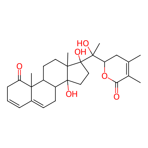 InChI=1S/C28H38O6/c1-16-15-22(34-23(30)17(16)2)26(5,31)28(33)14-13-27(32)20-10-9-18-7-6-8-21(29)25(18,4)19(20)11-12-24(27,28)3/h6-7,9,19-20,22,31-33H,8,10-15H2,1-5H3/t19-,20+,22+,24-,25-,26-,27+,28-/m0/s1 |