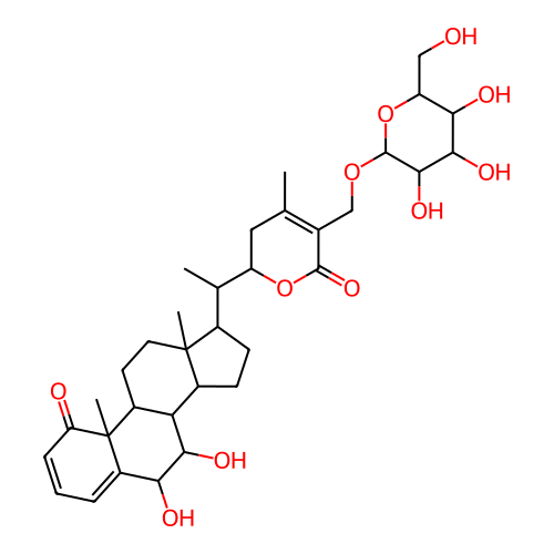 InChI=1S/C34H48O11/c1-15-12-22(44-31(42)17(15)14-43-32-30(41)29(40)27(38)23(13-35)45-32)16(2)18-8-9-19-25-20(10-11-33(18,19)3)34(4)21(26(37)28(25)39)6-5-7-24(34)36/h5-7,16,18-20,22-23,25-30,32,35,37-41H,8-14H2,1-4H3/t16-,18+,19-,20-,22+,23+,25-,26+,27+,28-,29-,30+,32+,33+,34+/m0/s1 |
