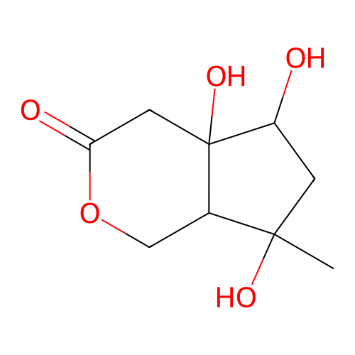 InChI=1S/C9H14O5/c1-8(12)2-6(10)9(13)3-7(11)14-4-5(8)9/h5-6,10,12-13H,2-4H2,1H3/t5-,6-,8+,9+/m1/s1;InChI=1S/C9H14O5/c1-8(12)2-6(10)9(13)3-7(11)14-4-5(8)9/h5-6,10,12-13H,2-4H2,1H3/t5-,6-,8+,9+/m0/s1;InChI=1S/C9H14O5/c1-8(12)2-6(10)9(13)3-7(11)14-4-5(8)9/h5-6,10,12-13H,2-4H2,1H3;InChI=1S/C9H14O5/c1-8(12)2-6(10)9(13)3-7(11)14-4-5(8)9/h5-6,10,12-13H,2-4H2,1H3/t5-,6?,8-,9-/m0/s1 |