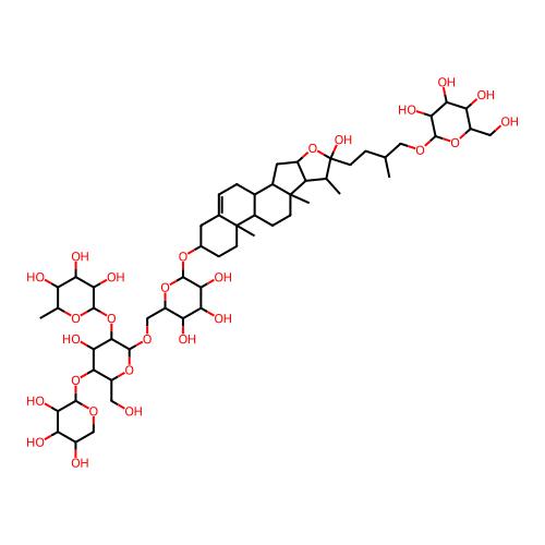 InChI=1S/C56H92O27/c1-21(18-73-49-43(68)40(65)37(62)31(16-57)78-49)8-13-56(72)22(2)34-30(83-56)15-28-26-7-6-24-14-25(9-11-54(24,4)27(26)10-12-55(28,34)5)77-52-45(70)41(66)38(63)33(80-52)20-75-53-48(82-51-44(69)39(64)35(60)23(3)76-51)46(71)47(32(17-58)79-53)81-50-42(67)36(61)29(59)19-74-50/h6,21-23,25-53,57-72H,7-20H2,1-5H3 |
