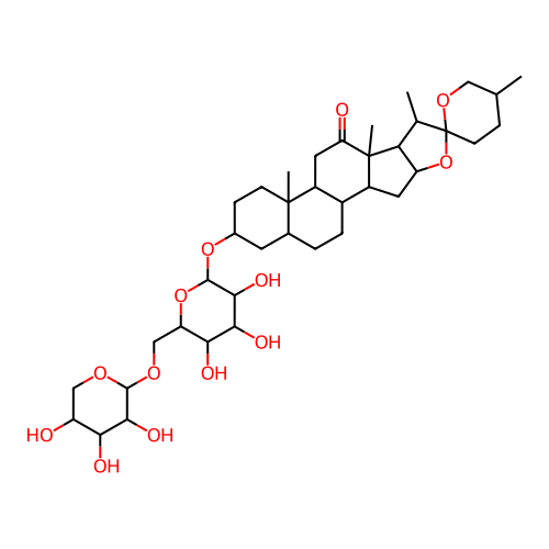 InChI=1S/C38H60O13/c1-17-7-10-38(48-14-17)18(2)28-25(51-38)12-23-21-6-5-19-11-20(8-9-36(19,3)22(21)13-27(40)37(23,28)4)49-35-33(45)31(43)30(42)26(50-35)16-47-34-32(44)29(41)24(39)15-46-34/h17-26,28-35,39,41-45H,5-16H2,1-4H3/t17-,18+,19+,20+,21-,22+,23+,24+,25+,26-,28+,29+,30-,31+,32-,33-,34+,35-,36+,37-,38-/m1/s1 |