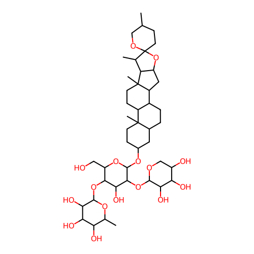 InChI=1S/C44H72O16/c1-19-8-13-44(54-17-19)20(2)30-28(60-44)15-26-24-7-6-22-14-23(9-11-42(22,4)25(24)10-12-43(26,30)5)56-41-38(59-39-34(50)32(48)27(46)18-53-39)36(52)37(29(16-45)57-41)58-40-35(51)33(49)31(47)21(3)55-40/h19-41,45-52H,6-18H2,1-5H3/t19-,20-,21-,22+,23-,24+,25-,26-,27+,28-,29+,30-,31-,32-,33+,34+,35+,36-,37+,38+,39-,40-,41+,42-,43-,44+/m0/s1 |
